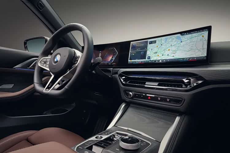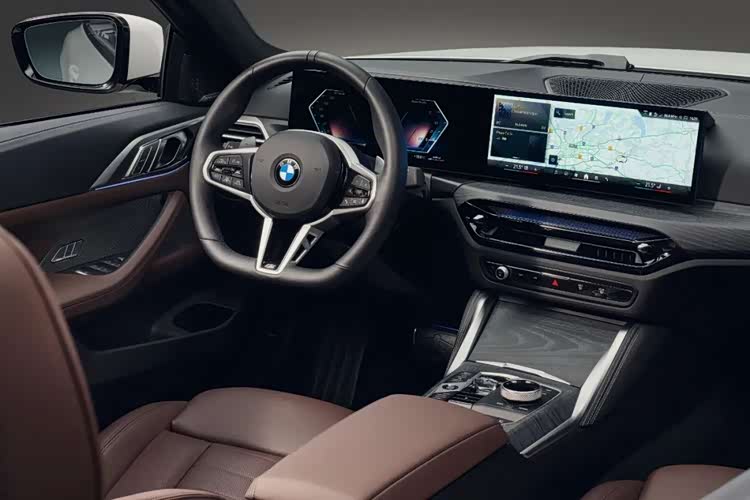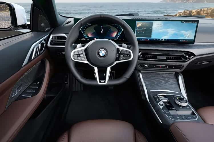 内装的变化相较于车外要更加明显。首先新4系及新M4仍保留了一体式悬浮曲面屏,并应用最新的第8.5代BMW操作系统,该系统最明显的特征是以导航地图为底图,左侧为收录了诸多常用功能的“巧控浮窗”,底栏则是将一些常用功能加入,便于驾乘者操作。