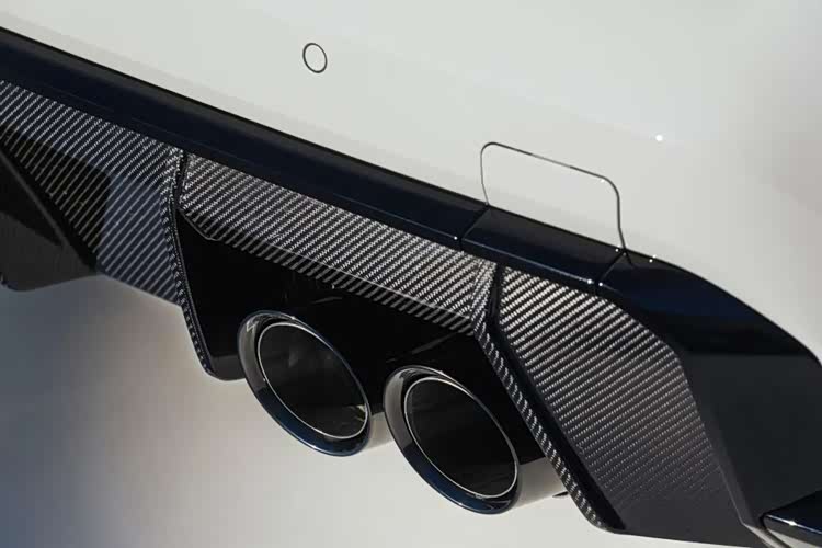 3、新M4尾部的宝马logo,从现款的银色底座改为了黑色高光底座(银色外圈)。