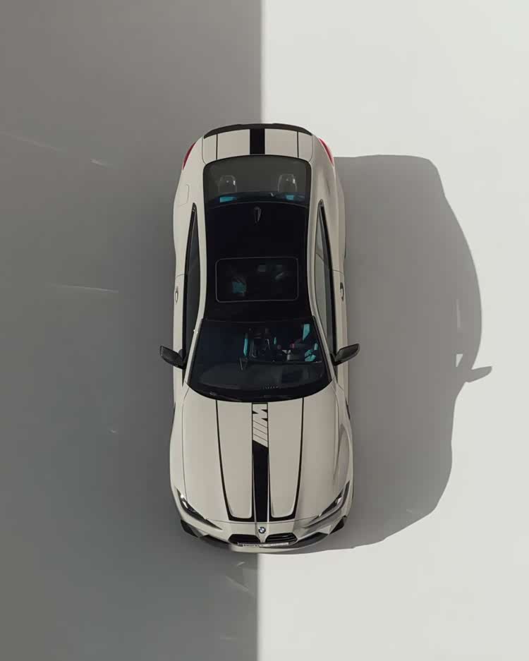 4、新M4提供了新的选装配置,即发动机盖和尾箱盖的设计图案(黑色广告及红色高光可选),这并非拉花贴纸,而是实实在在的车漆,选装后,新M4也算是拥有“双色”车身了。