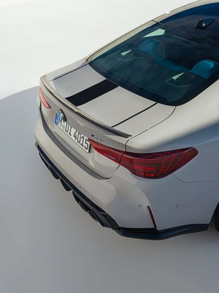 2、此前出现在M4 CSL(限量1000辆)上的激光尾灯,如今成为了新4系及新M4的标配。在这其中,每一个激光二极管分别照亮一个光纤束,使得车尾呈现出复杂的灯光图案,赋予车尾独一无二的设计。