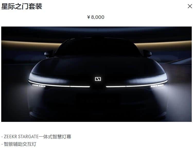 其次是8000元的星际之门套装,展现了极氪007对未来出行的美好想象。ZEEKR STARGATE一体式智慧灯幕的设计,独树一帜,夜行时更显魅力。智能辅助交互灯则是安全行车的好帮手,为行人和车辆提供了额外的警示。
