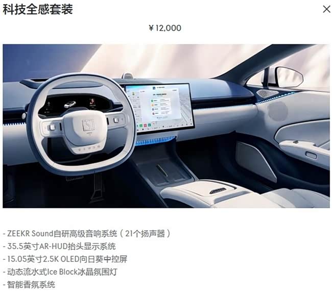 星际之门套装,这8000元的选装不仅为极氪007披上了科技前卫的外衣,还提高了行车安全。智能互动灯可增加行人和车辆的识别度,但同样的,如果你的行驶环境并不需要这种额外提醒,可以考虑其他配置的性价比。