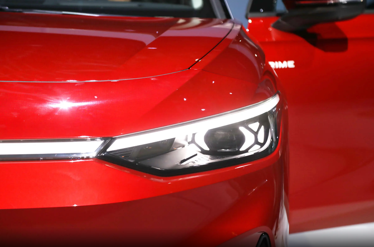 接下来是车灯部分。大众ID.7 VIZZION采用了狭长犀利的LED大灯,这种设计使得车头看起来更加犀利,充满了现代感。远近光灯都采用了矩阵式的设计排列,提升了照明效果和行车安全性。LED日间行车灯带的设计同样醒目,与车身线条完美融合,增强了车辆的视觉冲击力。远近光灯融为一体,形成贯穿式设计,有效地提升了车头的视觉宽度,使其更具动感。大灯的造型灵感来源于珠宝设计,展现出一种晶莹剔透的璀璨感。这种精致的设计,使得ID.7 VIZZION在车流中独树一帜,轻易捕捉到人们的目光。在功能方面,大灯配备了自适应远近光灯、自动大灯、大灯随动转向、前大灯雨雾模式等,丰富的功能保障了行车过程中的道路视野,提升了安全性。