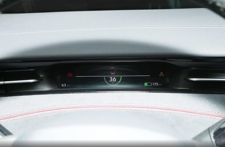 仪表盘的尺寸非常小,隐藏在黑色的装饰线条里,采用了高清全液晶设计,能够提供基础的行车信息,包括车速、剩余电量、车门状态等。仪表盘的界面设计简洁明了,易于读取,提升了驾驶安全性。