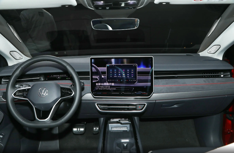 大众ID.7 VIZZION搭载了一块15英寸的中控触摸屏,集成了导航、音乐、电话等多种功能。屏幕分辨率高,显示效果清晰,操作流畅,基本上和常用平板电脑没什么区别,配合上4G车联网,可以使用导航功能,和影音娱乐功能。仔细看,中控屏的设计是有一定的倾斜度的,方便驾驶者查看屏幕信息或者操控屏幕,中控屏下方设有空调控制面板,方便驾驶员对车内温度进行调节。