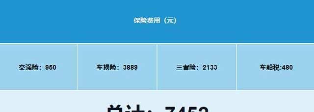除此以外,保险费也是每年必须支付的,一般与车型、车龄等有关,其中950元的交强险基本固定,加上480元的车船使用税,第三方责任险根据车主选择来定,我们按照200万的赔付标准来算,为2133元,车损险为3889元,相对较高,合计金额为7452元,均摊每月621元,开销挺大,赶上油费了。