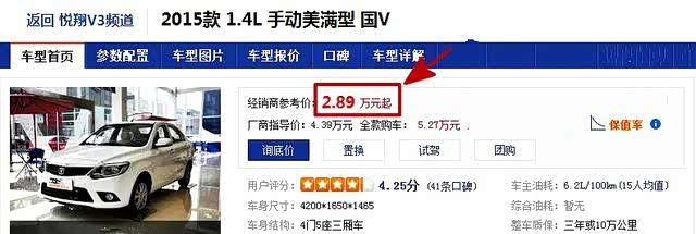 今天要和大家聊的这款车相信大家都已经看到了,就是来至长安汽车旗下的2015款1.4L手动美满型的 悦翔V3(参数|询价)这款车,根据经销商报价,目前这款车最大优惠高达1.5万,售价仅仅为2.89万,加上新车购置税以及保险,也就3万多落地的价格,对于这样的价位而言,这款车绝对算的上最适合新司机练手,而且对于购车预算比较低的消费者而言,作为一款家用代步车也是极为不错,而且这款车这么低的售价,即使开个三五年后换车,也不会有太大的损失,毕竟还是比较保值的。