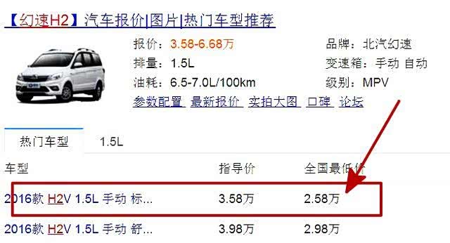 今天白话要和大家聊的这款车,就是来自北汽幻速h2这款七座mpv车型,这款车也是一款最为廉价的mpv车型了,指导售价仅仅3.58-6.68万,而根据某知名行业网站统计的经销商报价显示,这款车部分地区的优惠力度高达1万,最低配车型2016款H2V1.5L手动标准版售价仅仅为2.58万。2万多久能买一台7座mpv车型,这样的诱惑力还是非常大的,那么接下来我们就来一起来了解下北汽幻速H2吧!