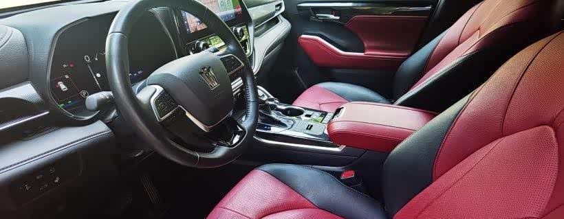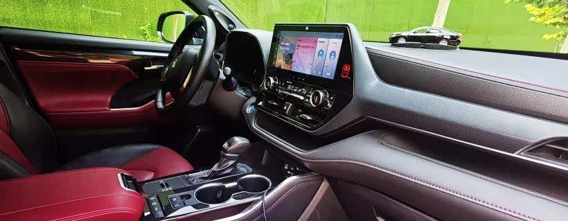这款黑红内饰是我自己后来包的,因为这个双拼色太好看了在中控部分新车采用了大面积的皮质包裹和缝线的穿引,而像中控屏的造型和挡把的设计又多少有些雷克萨斯的影子。但皇冠陆放的优势之处不仅仅在于内饰的用料和做工,论配置,新车也有足够的立足之本,即便置身30万级别的合资旗舰SUV阵营,皇冠陆放依然不输任何一款同级竞品
