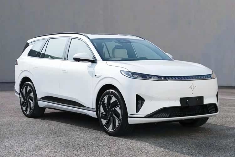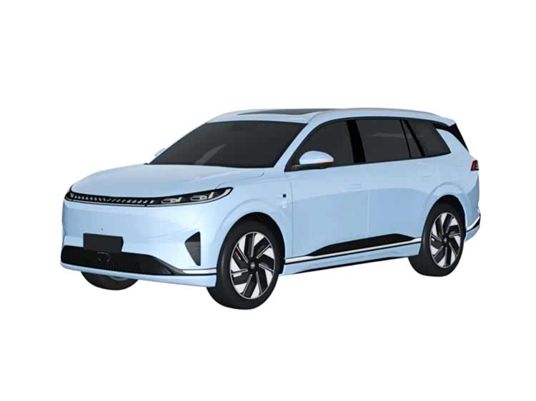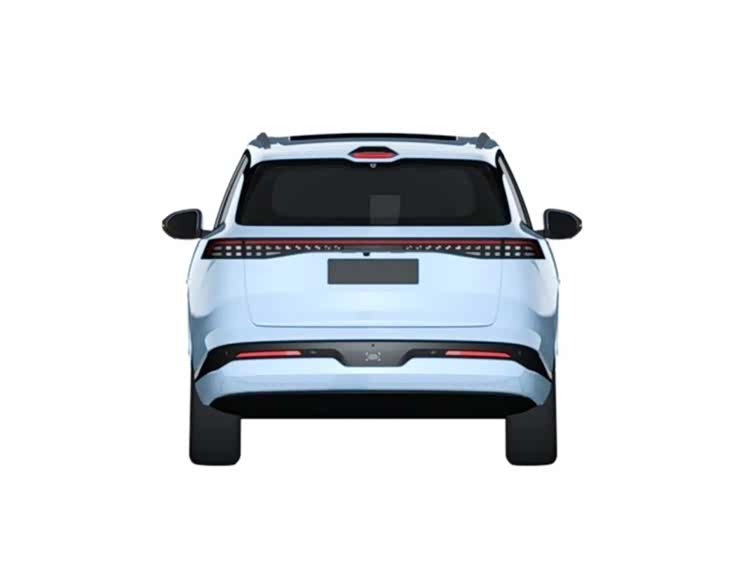 先来看外观,整车的造型与理想L8有几分相似,前脸的造型十分简洁,狭长的大灯组与中间的装饰板相连接,形成一种贯穿的效果,也将车头的视觉宽度进一步拉伸,下方梯形的黑色饰板也带来了一定的运动感。