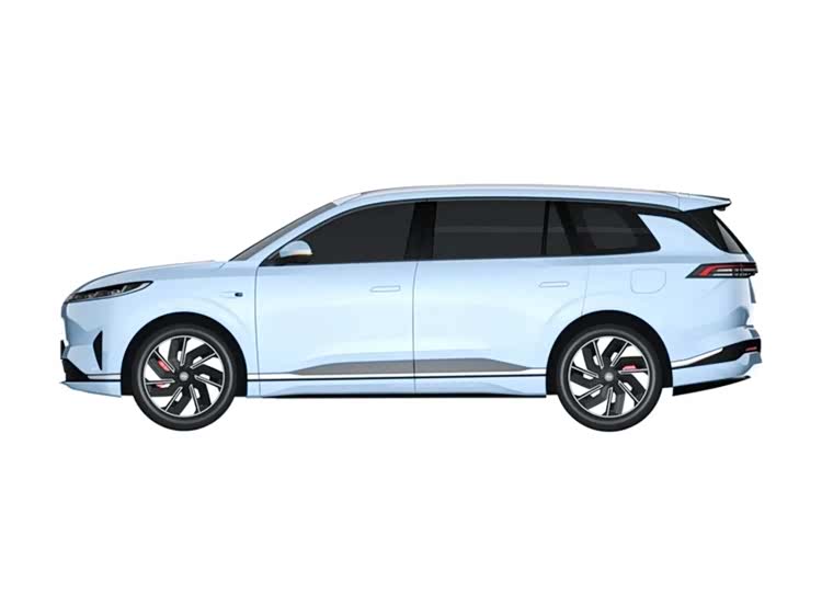 来到侧面,整个轮廓也比较像理想L8,悬浮式的车顶、旋风式轮毂、侧裙处黑色饰板+镀铬饰条的装饰处理,也为车辆提升了运动感,整车尺寸方面车长达5002mm,车宽1972mm,车高1732mm,轴距达3025mm。