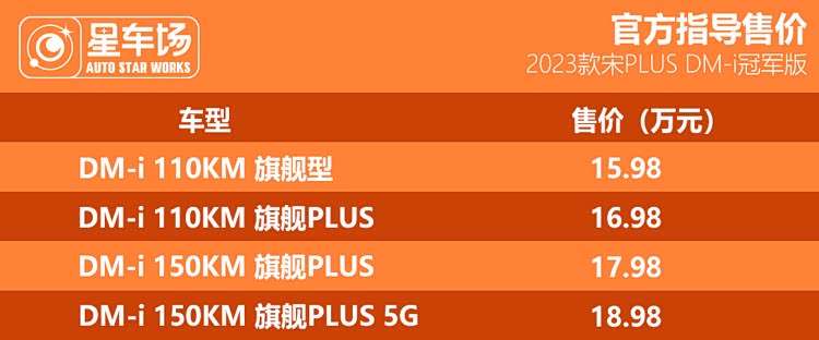 宋PLUS DM-i冠军版分为四款配置,四款配置有明确的划分,分为110KM车型高/低配以及150KM高/低配,我们来简单看一下。