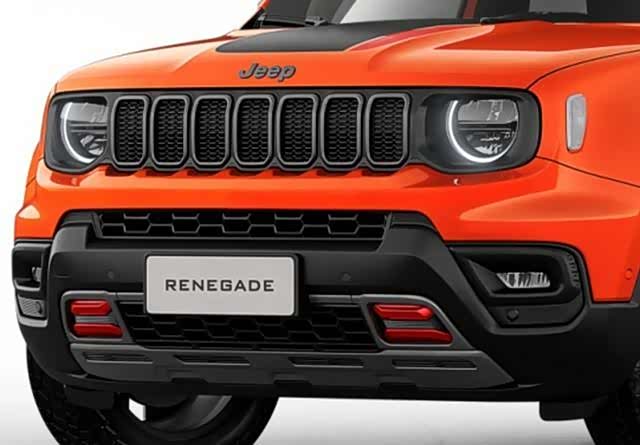 新款Jeep自由侠的造型还是采用了家族式的设计语言,相比现款车型是进行了一些调整的,它的前脸仍采用了Jeep家族标志性的7孔进气格栅,并且经过了熏黑处理,两侧复古的圆形大灯与格栅融为一体,拉伸了前脸的视觉宽度。下包围的造型变化是比较明显的,取消了圆形的雾灯,改为了红色的饰板进行装饰,整体前保险杠的设计变得更加粗犷。