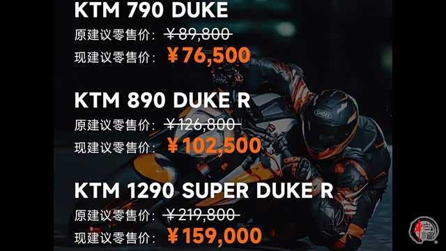 另外两款车型,KTM 890 DUKE R原价126,800元,现优惠24,300元,降价后售价为102,500元;KTM 1290 SUPER DUKE R原价219,800元,现直降60,800元,降价后售价为159,000元。从降价幅度可以看出,品牌溢价过高,利润空间太大。只要降下来,就很难再提升上去。即便出了新款,大家心里也都有数。