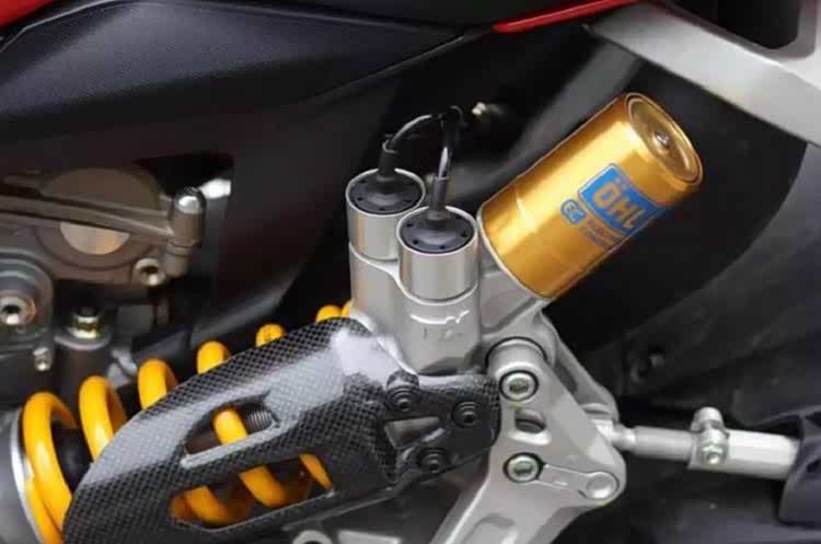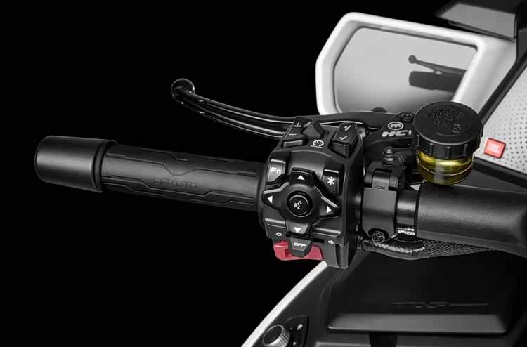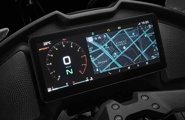 整车前后减震全部来自马祖奇,刹车卡钳则来自布雷博品牌,标配了电子油门,双向电子快排系统,弯道ABS,以及支持投屏导航的12.3寸TFT仪表,另外电加热手把,自动大灯,滑动离合也都配备齐全。