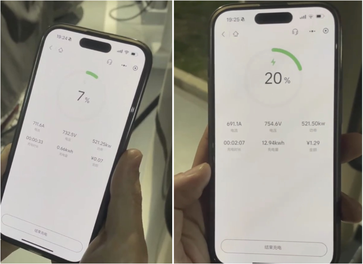 在一座全部安装5C充电桩的充电站里,少量的充电桩被占用的前提下,其标准可以达到11分钟恢复500公里续航,平均充电功率在400kW以上;在全部充电桩都在使用状态下,平均充电功率同样能超过300kW,在单车充电的时候自然能达到510-520kW左右。