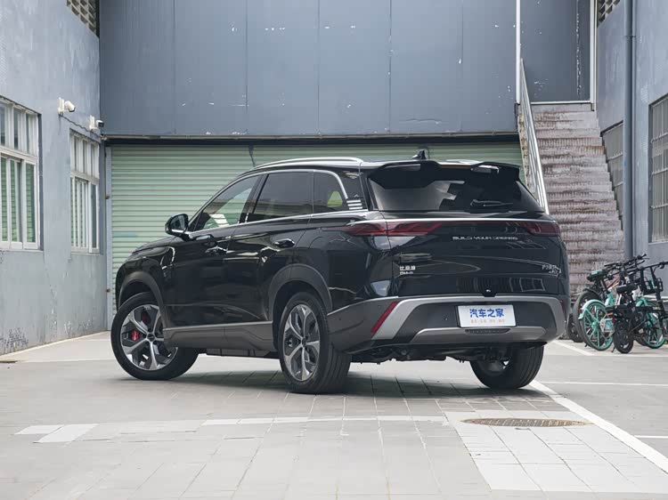 车身侧面显得简洁流畅,并无太多线条的勾勒。隐藏式的门把手设计以及后窗的隐私玻璃配置皆独具匠心,19英寸多辐式轮毂内凹的翼子板展现出其内敛而强大的爆发力。车窗周边设有镀铬装饰,并加装了行李架,尾部设计圆润饱满,尾灯经过熏黑处理,采用当下流行的贯穿式设计,上方配有高位刹车灯和鲨鱼鳍。