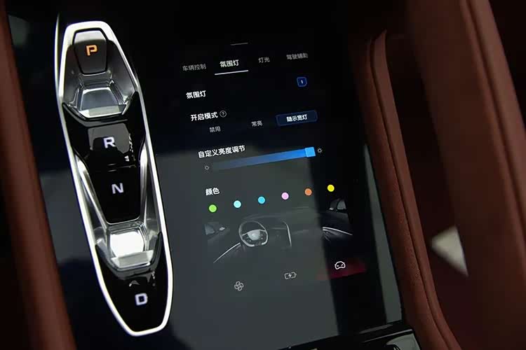 电子换挡按键旁边是这辆车的第四块屏,也是7英寸液晶屏。主要作用是控制空调、驾驶模式、车门车窗控制等。