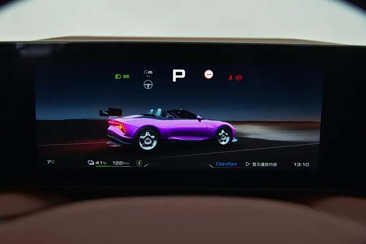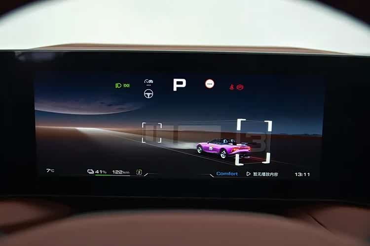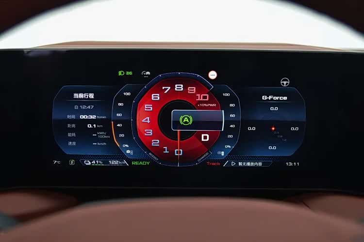 中央的10.25英寸屏主要显示车辆信息,有很多有意思的动画效果。不同驾驶模式下,界面会有相应的变化。