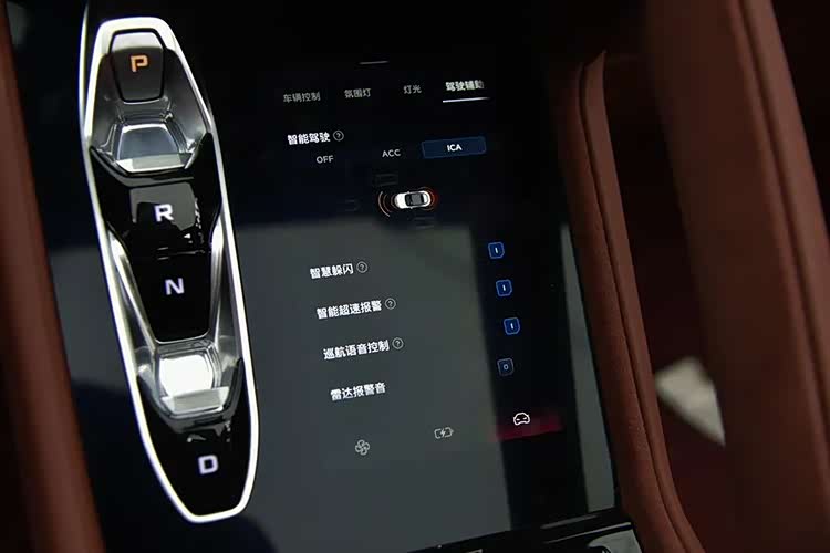 内饰设计风格奇特,采用了不对称的思路,好不好看见仁见智,但用料还可以,凡是触手可及的位置都是软性包裹。