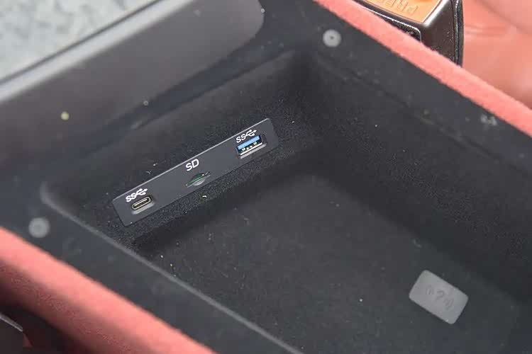 扶手箱比较小巧,内部有一个USB接口,一个Type-C接口及SD卡槽。