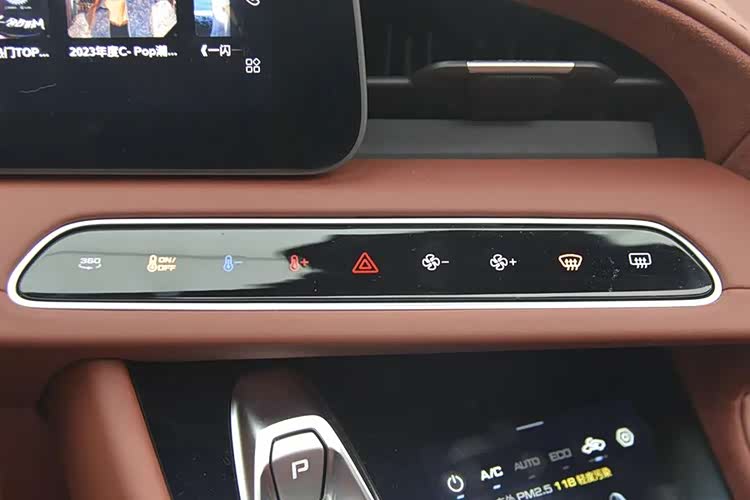 三联屏下方是空调控制按键,也都是虚拟按键。