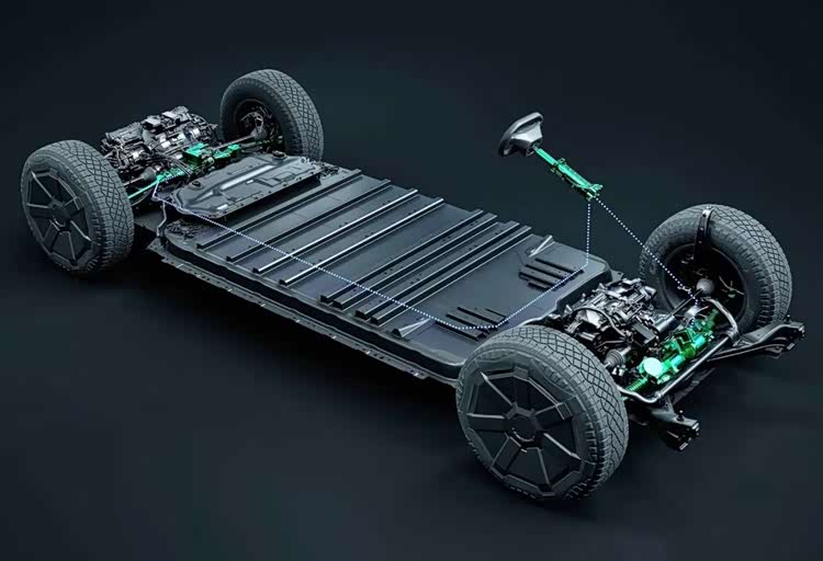 他采用了承载式车身结构,高强度坚固的车身可作为基础框架,无需额外布置底盘。这种在车身框架上安装驱动结构的做法多应用于军工领域,比如轮式装甲车。再加上他的双电机和三电机车型都是电动四驱,配合强劲的动力,其越野能力也毋庸置疑。