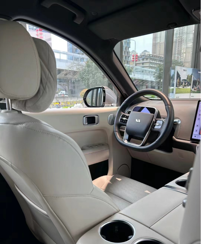 而在内饰上,依旧是传统的风格,可以说是没有明显的改变,即便是相对于理想L7、理想L9整体的变化也是不大的。液晶仪表盘嵌在了方向盘上方,尺寸很小,但基本的信息还是能够显示完全。
