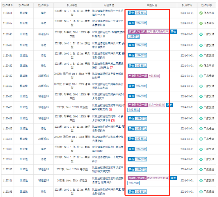 当然,降价对于汽车相关投诉的影响,并不仅仅局限于简单直接的价格问题,还延伸出了各式各样的投诉类别。