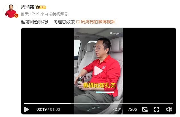 周鸿祎试驾哪吒L,体验感良好给出高度评价