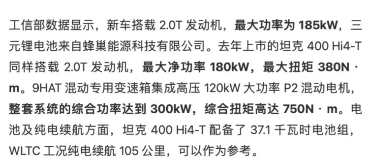 坦克300 Hi4-T将推出三款车型:普通/高配/S版本,或为25万元起售