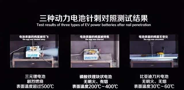 比亚迪的主要优势是磷酸铁锂电池,主要优势在于电池化学性较为稳定,更耐高温,循环寿命更长,以刀片电池为例,经受住了严苛的“针刺试验”。