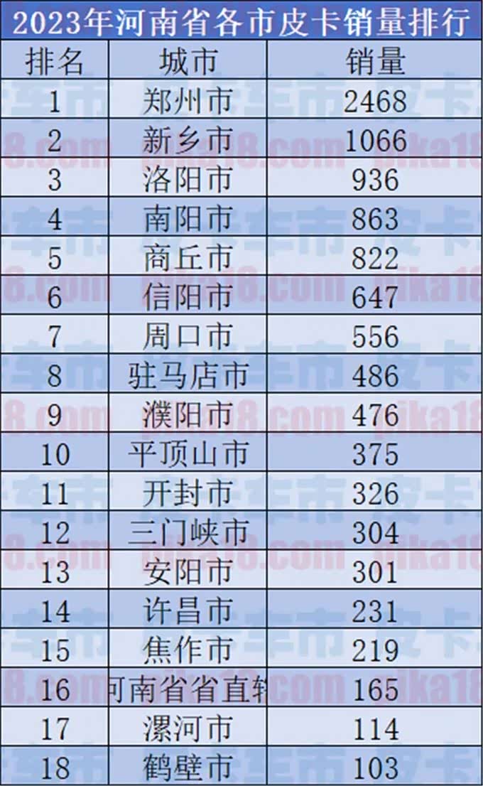 结合销量来看,2023年河南省共计售出皮卡10458台,位列全国第13。而其中郑州23年全年便售出2468台位列全省第一,并且其中1670台为柴油车型,702台为汽油车型,纯电皮卡则是96台。在限行政策仍施行时便有如此销量成绩,而且在郑州市内销量第一的辖区为金水区,该区属于郑州市区,足以看出郑州市民对于皮卡的旺盛需求,相信在今年解禁后郑州的皮卡销量还会有进一步飞跃。
