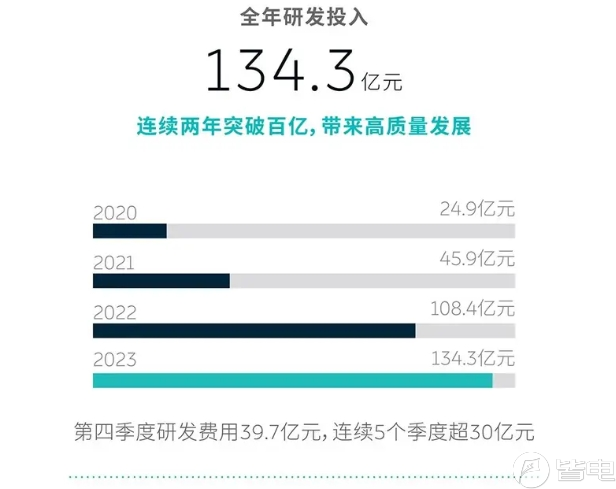 2023年研发费用同比增长,达134.3亿元