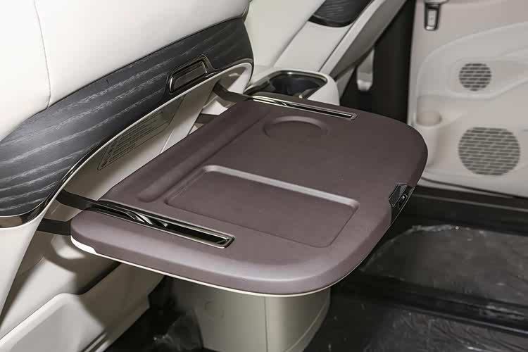 另外新款车型还在前排座椅靠背上增加了小桌板,便利性进一步提升。前排扶手箱后部的车载冰箱从老款的半导体制冷升级为压缩机制冷,制冷效果更好,能够实现零下6摄氏度到50摄氏度的温控范围。