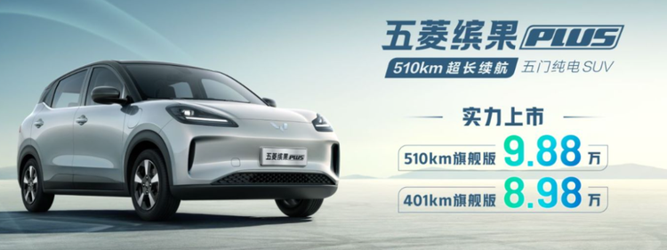 缤果PLUS共推出两款车型,分别是401km旗舰版和510km旗舰版,官方指导价分别为8.98万元、9.88万元。