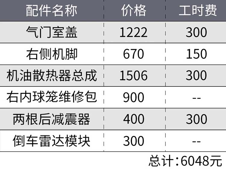 随后,4S店也给了我一份维修报价单,初步预估的维修费用是6048元。由于这些配件都需要订货,再加上国庆假期需要用车,所以我并没有把马6送去4S店维修,而是等国庆假期结束后,让家里人找了一家熟悉的修理厂去进行维修整备,维修所需的配件则是我自己在网上购买的。