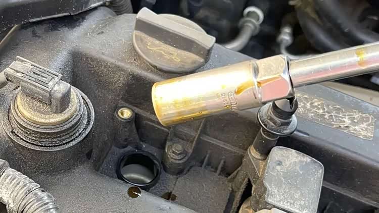 马6的原厂火花塞是每10万公里更换一次,但这辆车上次更换火花塞已经是10年前的事了,再加上这车又调过表,所以比较爱惜车的我又在网上花了91元买了四只火花塞。不过在更换火花塞时,马6又发现了一个新故障,它的气门室盖外侧虽然只是渗油,但是靠近火花塞的内侧已经开始大量渗油,所以拆掉高压包之后火花塞周围全是机油,看来这个必须得修了。