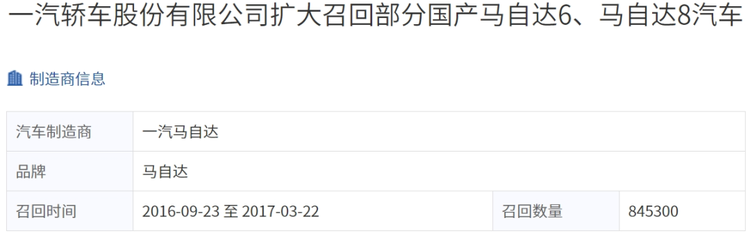 当初在购买马6时,我就查过这辆车的维保记录,当时系统就提示这辆车存在召回,但我没有太细心地去查看所有召回信息。直至有一天我在“汽车召回网”上输入了车辆的VIN码查询后,才发现05-13款马6在2016-2017年召回过气囊。由于距离上次召回已经过去了6年,再加上一马早就跟长马合并了,因此我只能跟长安马自达4S店联系,但这事4S店好像也不知道行不行,所以4S店只好先给厂家发一份邮件咨询。