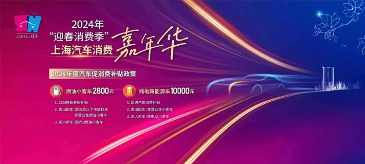 自2024年1月1日至12月31日,个人消费者报废或转让本人名下、在上海注册登记的小客车,并在上海购买新小客车的,燃油车可以申请一次性2800元购车补贴、纯电车可申请一次性10000元购车补贴。