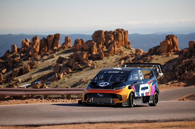 福特在去年的派克峰爬山赛的中,为我们带来了SuperVan 4.2纯电赛车,其配备了三具电动马达,拥有高达1408马力的最大功率。最终在Romain Dumas的驾驶下以8分47秒682的成绩获得组别第一名(派克峰公开组),超过了一众GT赛车。