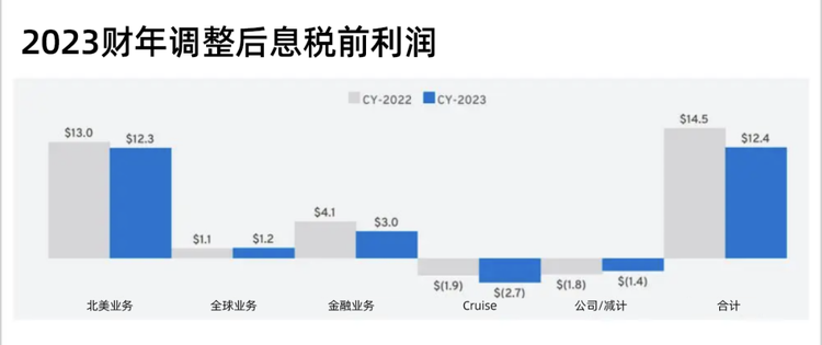 124亿美元的EBIT,有123亿美元是在北美市场赚的。其他运营板块,包括亚太地区在内的全球业务(GM International)一共赚了12.1亿美元,金融业务贡献了约30亿美元。