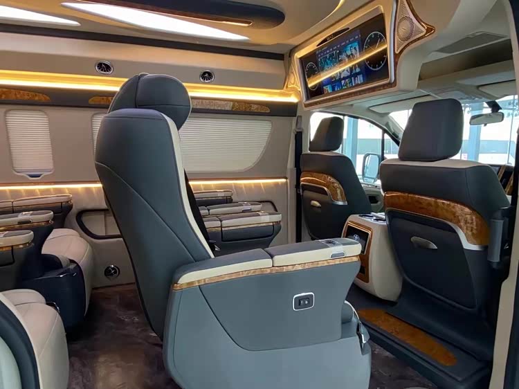配置:全车模具,不变形,无异味,吧台,埃尔法款包围、触屏款航空座椅(电动头枕、无线充电)、镂空中国风顶灯与侧壁灯带、JBL音响、定制铝合金锻造轮毂,主副驾真皮座椅、电动座椅、通风、加热,38.5寸曲屏吸顶电视,9寸中控显示大屏(卡仕达导航➕ 环影),电动中门,全车真皮手工包敷,全车加强版隔音,全车隐私膜,高端定制款木地板,空气净化系统……