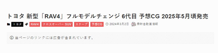日本当地媒体的消息指出,丰田公司将对RAV4进行全面改款(也就是换代),于2025年第二季度推出第六代车型(是的,如今在售的RAV4荣放/威兰达是第五代车型)。有海外汽车媒体根据目前披露的消息制作了全新一代(也就是第六代)RAV4荣放/威兰达车型的预测CG图,在过去,RAV4荣放通常在6年左右进行一次全面改款换代,而现款第五代车型将在2025年迎来上市的第六个年头,加上在北美和中国市场等几个重要市场越来越内卷的竞争(2022年威兰达是全球最畅销车型,2023年被特斯拉MODEL Y拉下冠军宝座),因此丰田对于RAV44荣放的换代步骤也不宜拖延,且需要尽可能的提前完成换代,本次丰田RAV4/威兰达的改款将带来一系列预期的规格和配置。