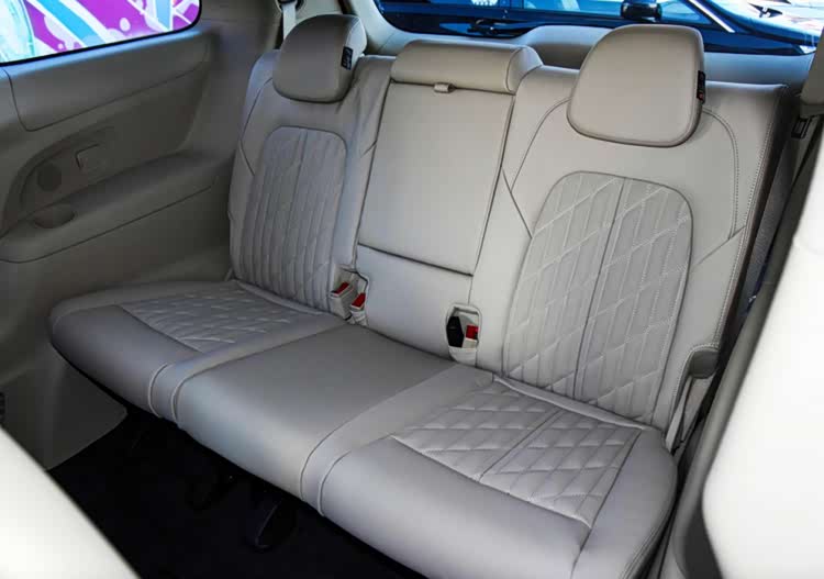 传祺E9第二排座椅调节方式则被集成在了扶手的触控屏中,座椅功能较为简单,具备腿托,以及座椅的前后和靠背角度调节,功能上同样具备通风,加热和按摩功能。同样第二排也具备折叠桌板。