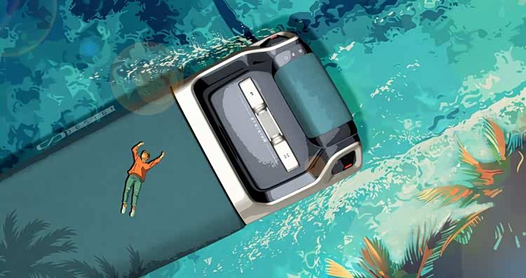 最后一张图更有创意了,看似车主躺在大海上航行的一艘小船之中,仔细一看,其实展现的是车内中岛+扶手箱区域。可以看到左上角从前到后的“R、N、D”字母,代表车辆换挡键的位置。P档在中央左侧,非常醒目,而右侧是一辆硬派越野车的差速锁按键。整个设计将科技与硬核完美兼顾。