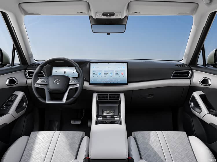 内饰设计保持了比亚迪一贯的风格,在此基础上加入了更多直线条的设计,营造出简洁而有力的内饰氛围。8.8英寸全液晶仪表和12.8英寸悬浮式中控屏的双屏系统,带来了极致的科技体验。而中央控制区域巧妙地保留了实体按键,确保了操作的便捷与直观。