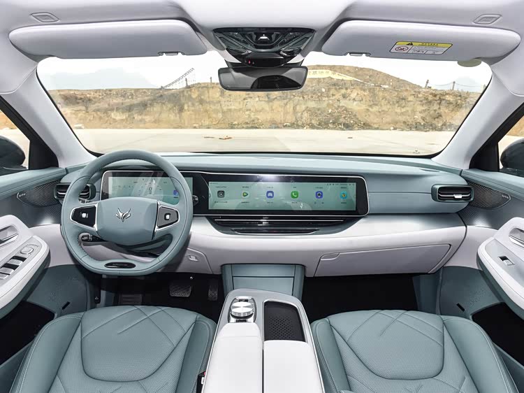 从驾驶舱来看,装备了12.3英寸仪表盘以及21.7英寸中控显示屏,配备了5G网络、Wi-Fi热点、手势控制功能、面部识别、车联网、GPS导航系统等多样化车载系统功能;从设计角度来看,驾驶舱中屏幕采用了贯穿式设计,从而增加了车内水平视野宽度。中控台采用了明亮饰板进行装饰,该饰板上线条设计精致巧妙,很好地提高了车内品质感,内饰制造工艺表现优良。方向盘设计独特,采用双辐式设计,并经过打孔处理,不仅美观还节省了空间。