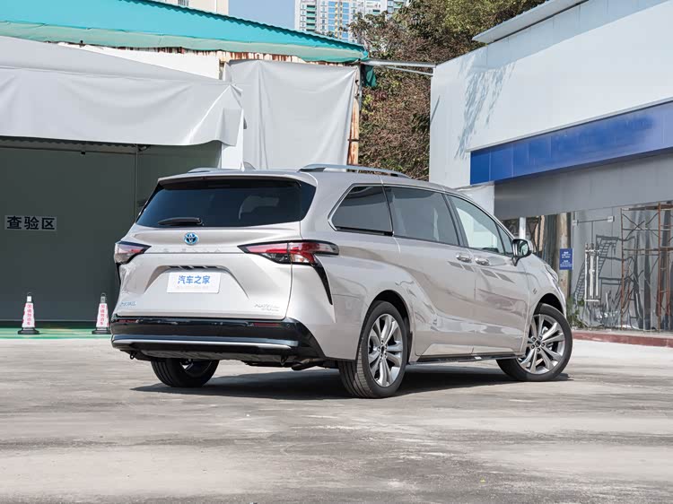 从侧面观察,赛那车身线条流畅,并采用了分段式腰线设计,提升了侧面视觉层次感。该车型采用5门7座配置,车门采用双侧电动开闭侧滑门模式。车轮采用五辐式设计,并配置了20英寸轮辋。后排玻璃选用隐私玻璃,且后窗配备遮阳帘,为后排乘客提供了足够隐私保护,此外,外后视镜具备自动防眩目、锁车自动折叠以及加热等实用功能。车身尺寸方面,赛那长宽高分别为5165x1995x1785mm,轴距达到3060mm,定位为中大型MPV。