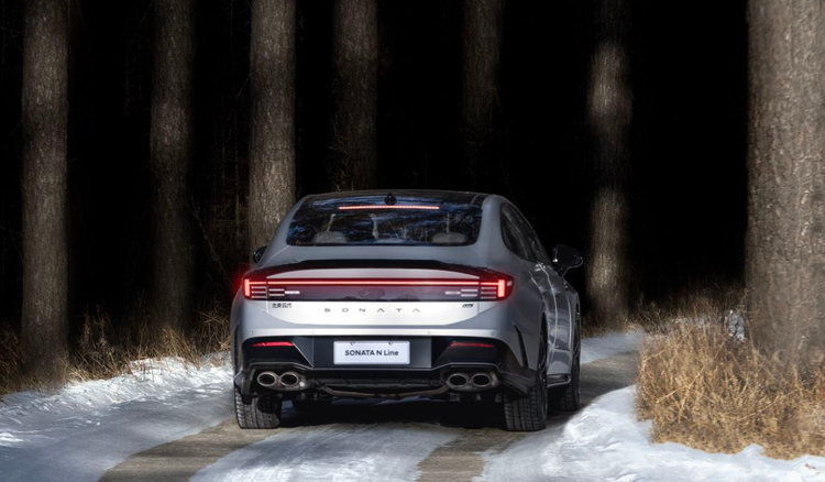 车身侧面,第十一代 索纳塔采用了轿跑式车身设计,车顶从前排向后下压,营造出一种动感的姿态。车身的轮廓线条流畅,与现款车型相比并无太大的变化,但依然能够展现出其独特的美感。车尾部分,新车采用了全新的贯穿式尾灯组设计,搭配新造型风格的保险杠,使车尾的层次感更加突出。